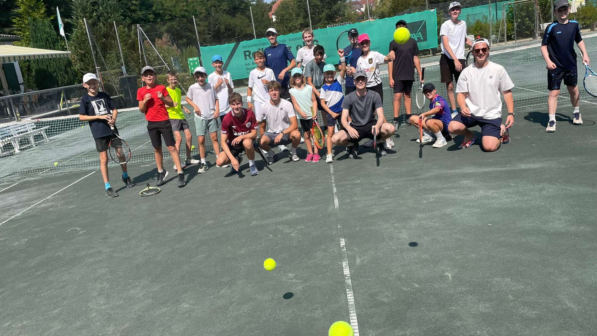 Trotz der großen Hitze wurde fleißig trainiert: Vorhand, Rückhand, Aufschlag, kleine Matches und viele spielerische Übungen standen auf dem Programm. Zwischendurch gab’s natürlich genügend Trinkpausen und jede Menge Gelächter – schließlich sollte der Spaß nicht zu kurz kommen.
